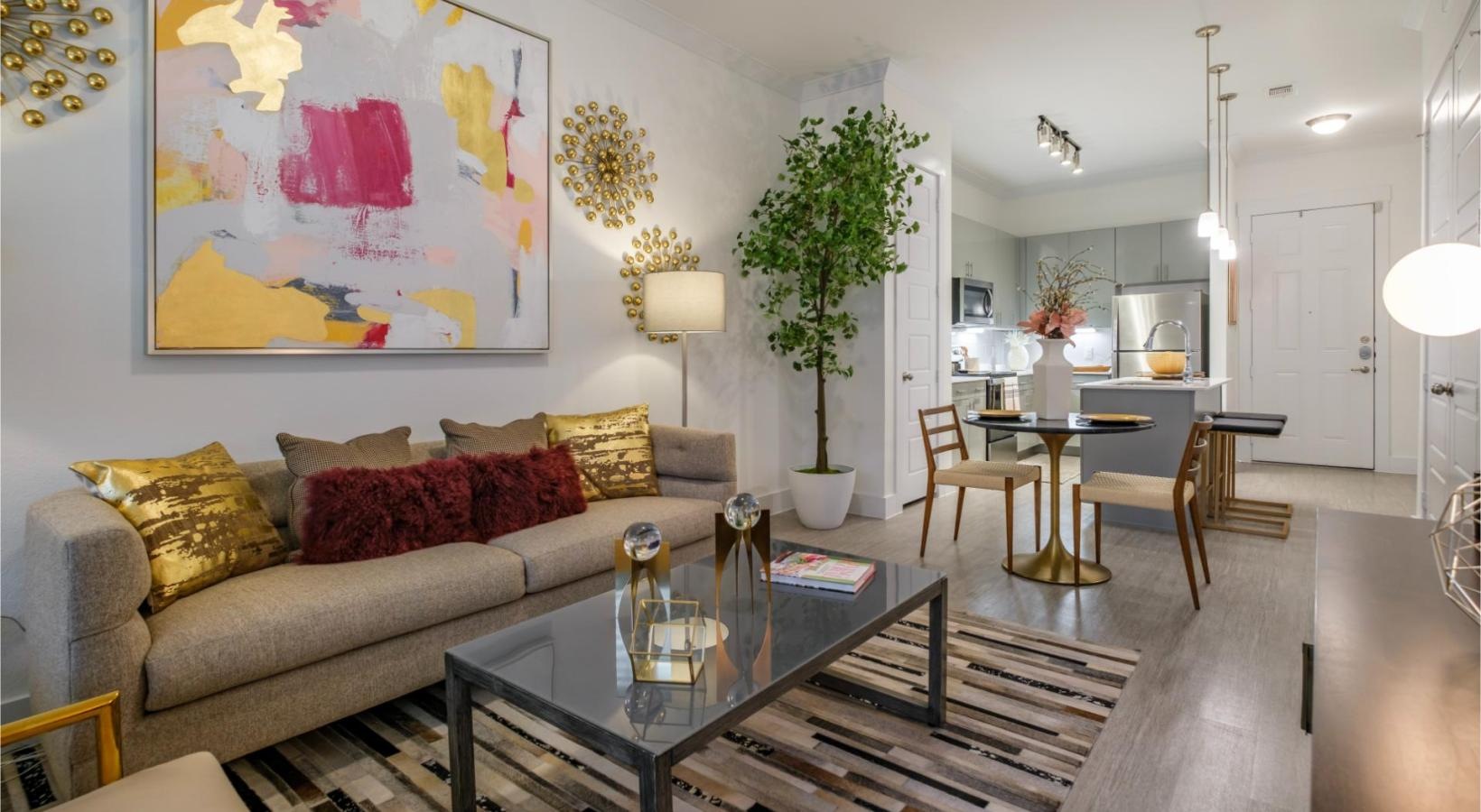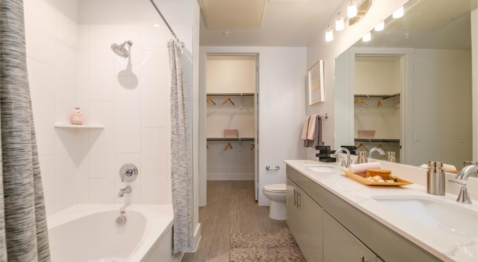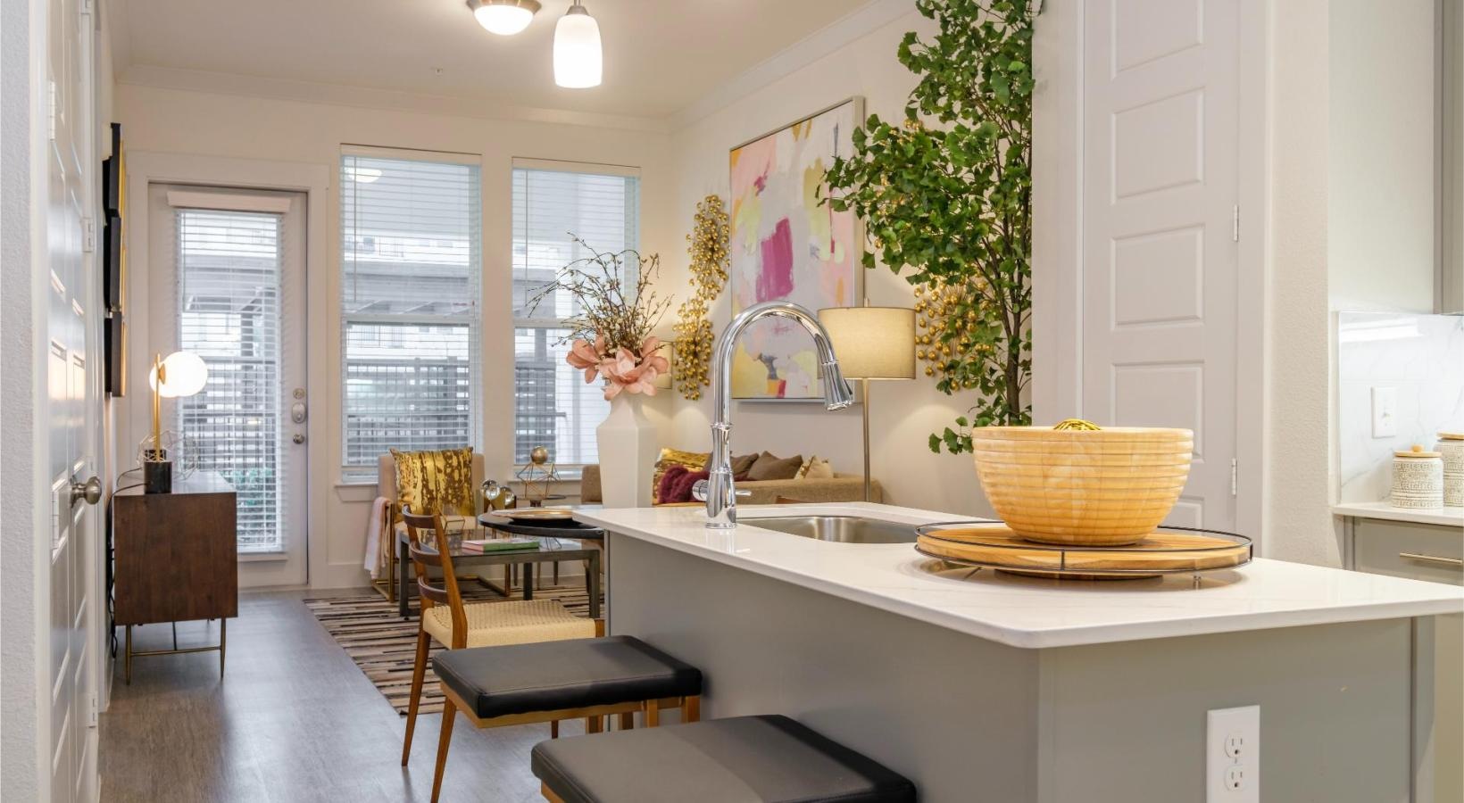 Peruse our gallery to find your new home in our South Grand Prairie apartments. Enjoy smart entries, environmentally friendly thermostats, and walk-in closets with custom wood shelving. Prep savory meals in the Epicurean kitchen with stainless-steel appliances and stylish cabinetry, then treat yourself to some pampering time in the bathroom with quartz countertops and garden tubs. Relax your muscles in the saltwater pool, bask in the sun on the expansive tanning deck, or join the conversation with neighbors at the outdoor fireplace. Visit the resident lounge with HDTV entertainment or try your billiards backhand at the game room. Benefit from a pet park & spa, private one-car garages, a business center, and a 24/7 fitness center outfitted with free weights and CrossFit stations. Our homes for rent in Grand Prairie are nearby a hub of entertainment. Take a stroll to Joe Pool Lake or some fun at Epic Waters Indoor Park, Urban Air Trampoline Park, and Fort Worth Zoo. Book a tour!